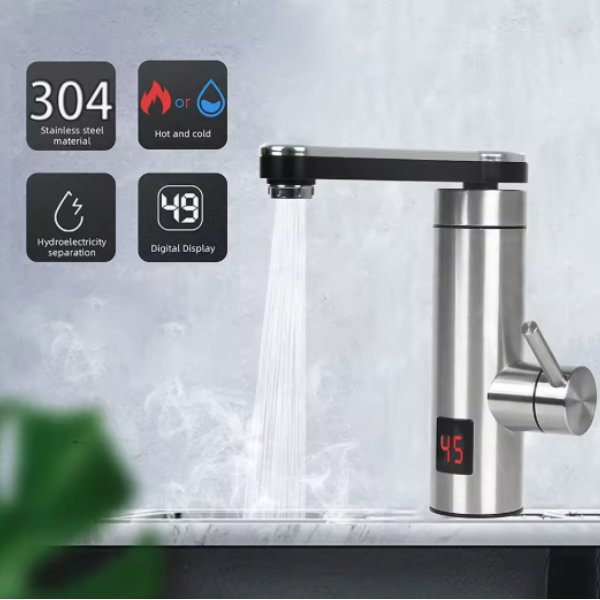 Y el Grifo GRICAL Eléctrico de 3300W con Pantalla LED es la nueva forma de disfrutar el confort desde el primer segundo del día. Olvida el agua helada y las duchas incómodas: este grifo te brinda agua caliente inmediata, sin esperas, sin calderas y sin complicaciones. Moderno, seguro y elegante, su diseño en acero inoxidable realza el estilo de tu baño mientras te ofrece comodidad y eficiencia total.